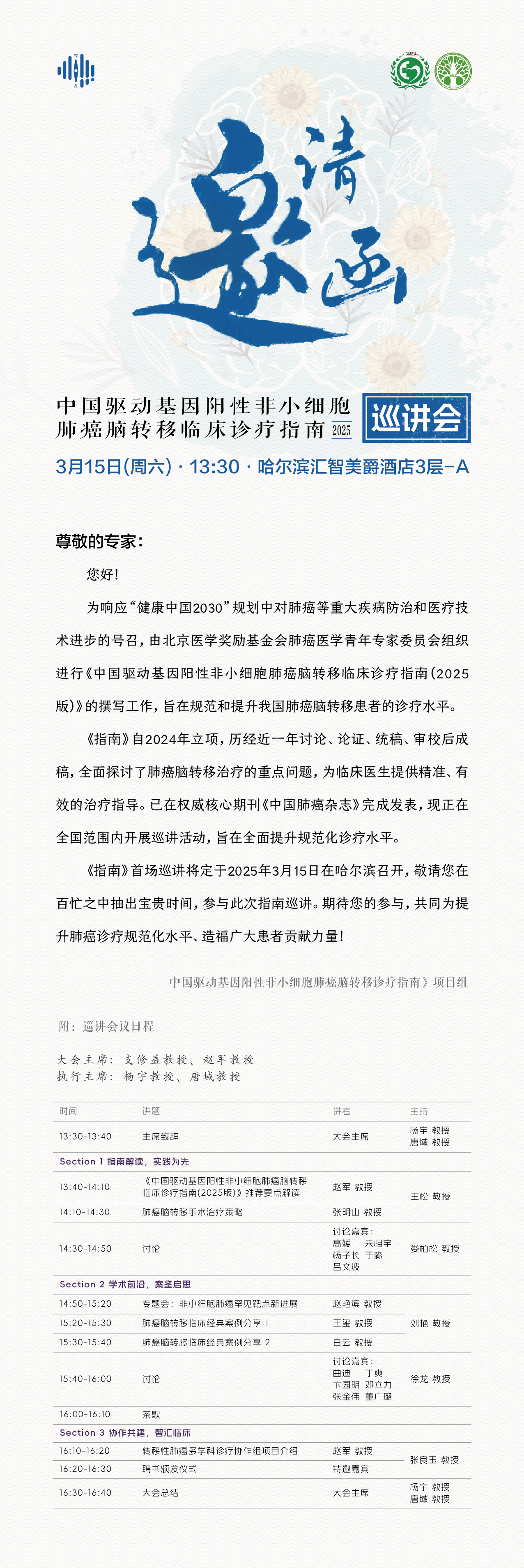 肺癌脑转移诊疗指南2025·首场巡讲即将在哈尔滨召开